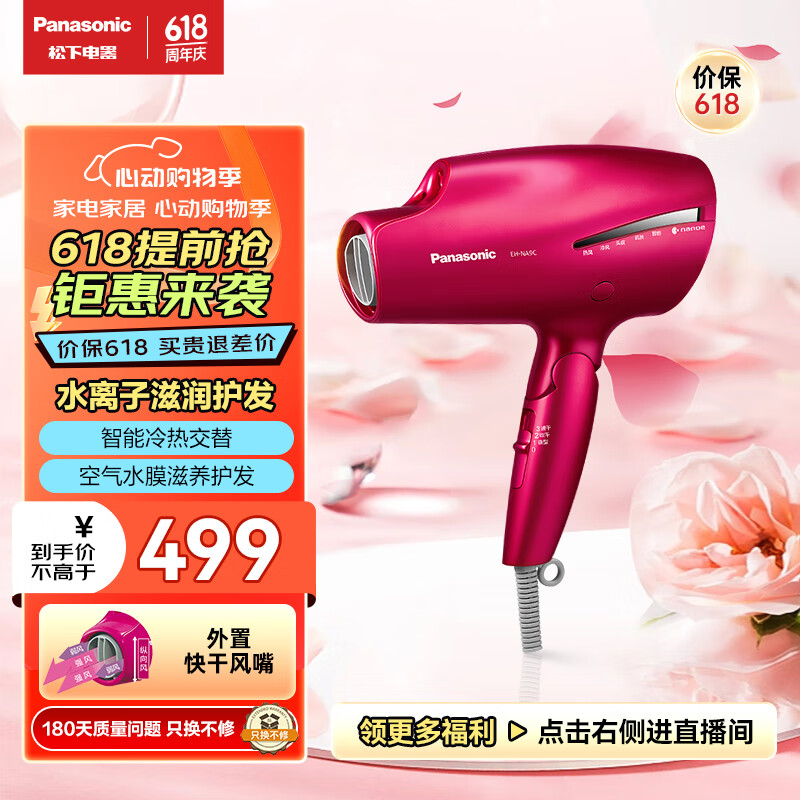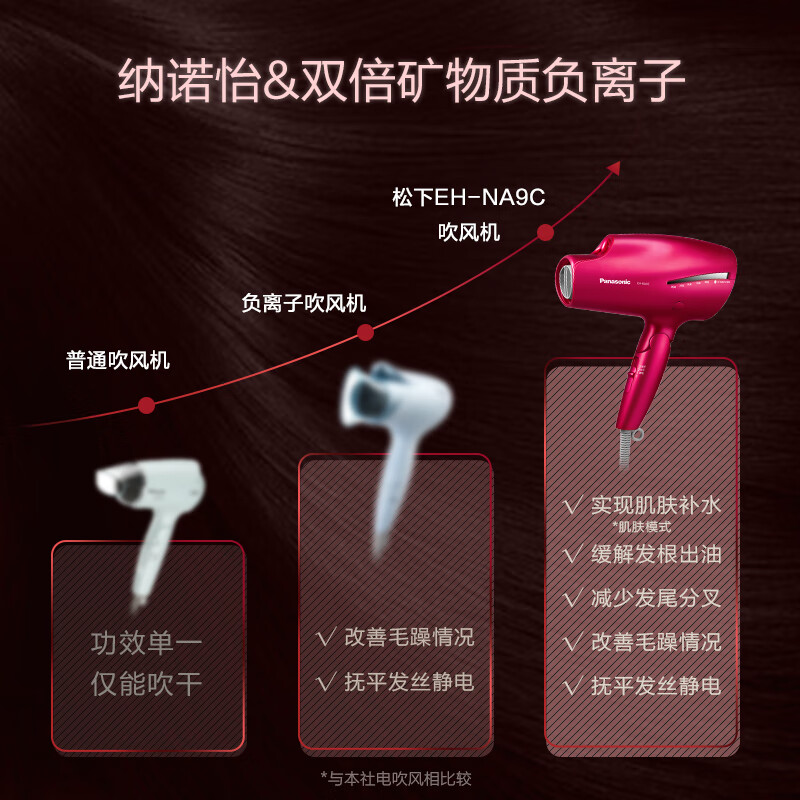 松下(Panasonic)电吹风机大功率高速折叠 大风力速干纳诺怡护发不伤发老婆女友家用电吹风筒NA9C红色价格:549.00元!
