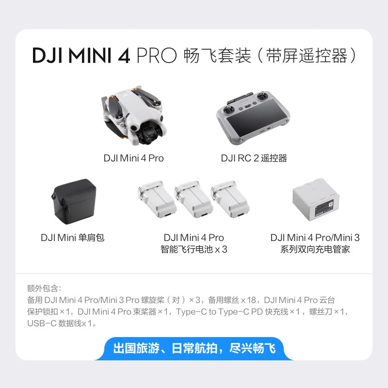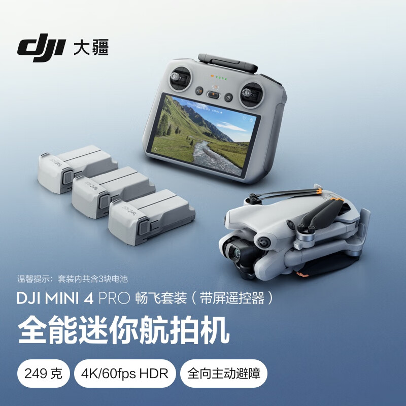 大疆 DJI Mini 4 Pro 畅飞套装(带屏遥控器版)全能迷你航拍机 入门级无人机高清专业航拍 无损竖拍价格:6988.00元!