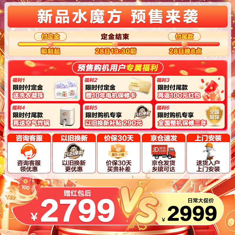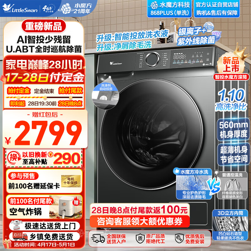 小天鹅(LittleSwan)水魔方滚筒洗衣机10公斤全自动家用变频 防缠绕 冷水洗护色护形 智能投放升级款TG100V868PLUS价格:2898.00元!