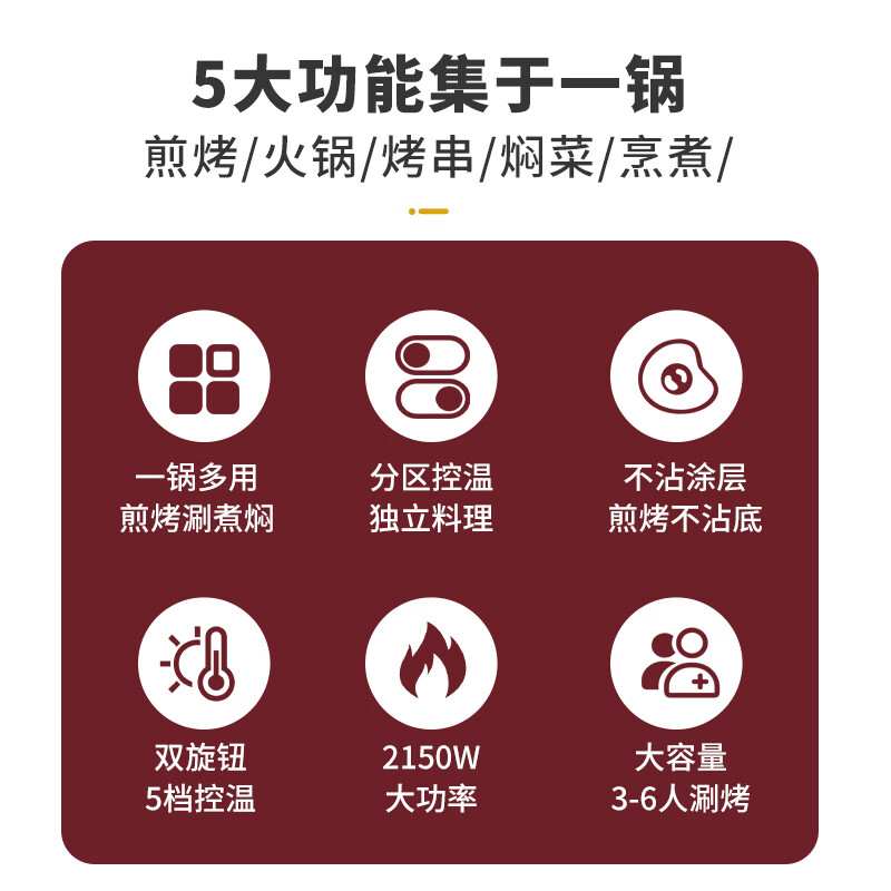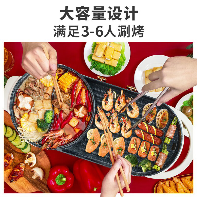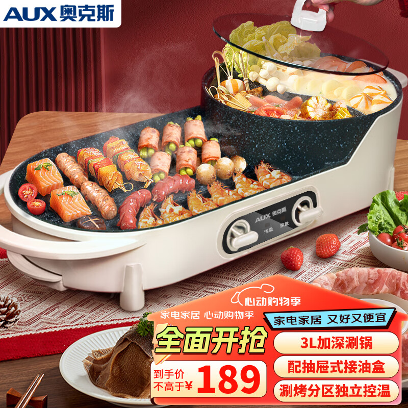 奥克斯(AUX)电烤炉 电烧烤炉 多功能锅鸳鸯电火锅 家用无烟电烤炉 电烤盘 烤涮一体两用锅LA-JDY01B价格:189.00元!