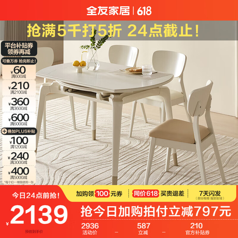 全友家居 餐桌现代简约岩板餐桌可圆可方伸缩功能吃饭桌子家具DW1121B价格:2936.25元!