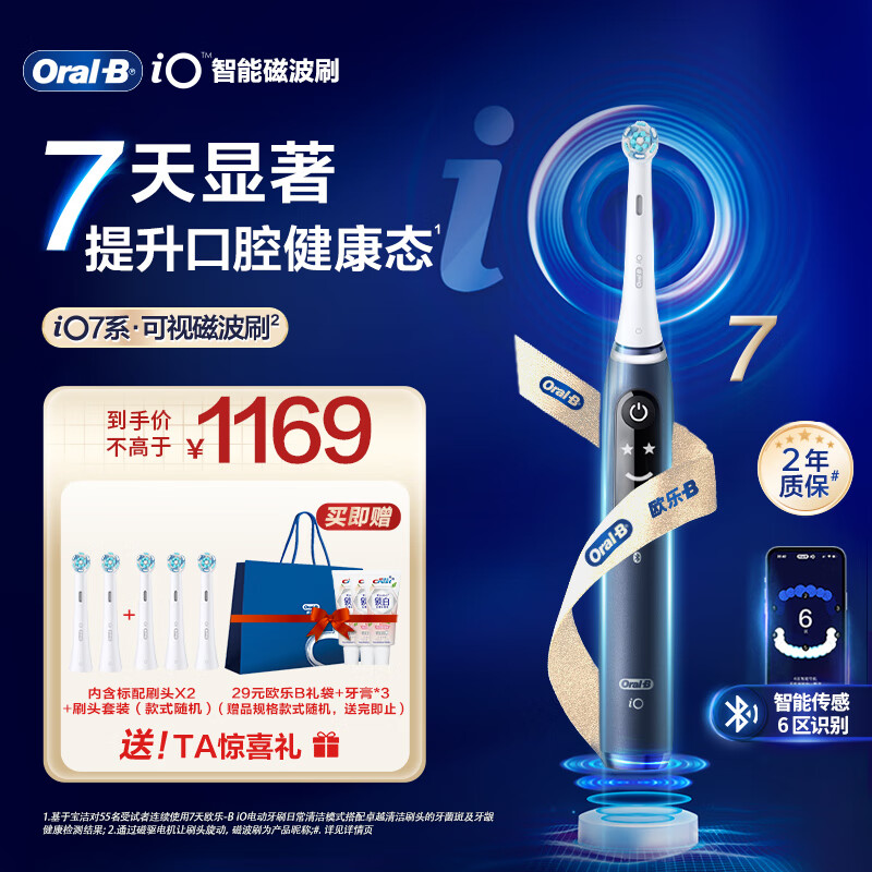 欧乐B成人电动牙刷iO7智能可视磁波刷iO系列圆头微震科技深度清洁牙龈按摩送男友送女友价格:1169.00元!