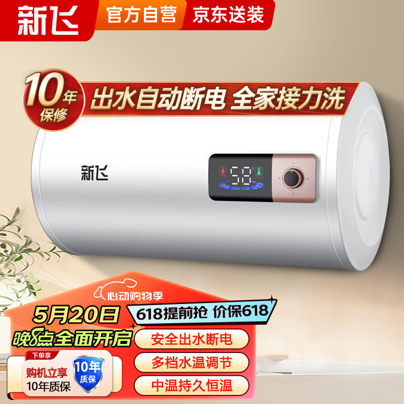 新飞家用电热水器圆桶40升储水式2200W一级能效节能出水断电速热恒温卫生间洗澡出租房DSZF-B207-40L价格:349.00元!