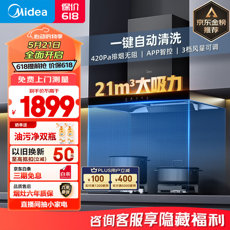 美的(Midea)抽油烟机灶具套装 家用欧式21大风量自动清洗吸烟机 5kW铜火盖燃气灶T201+Q230A天然气价格:1899.00元!