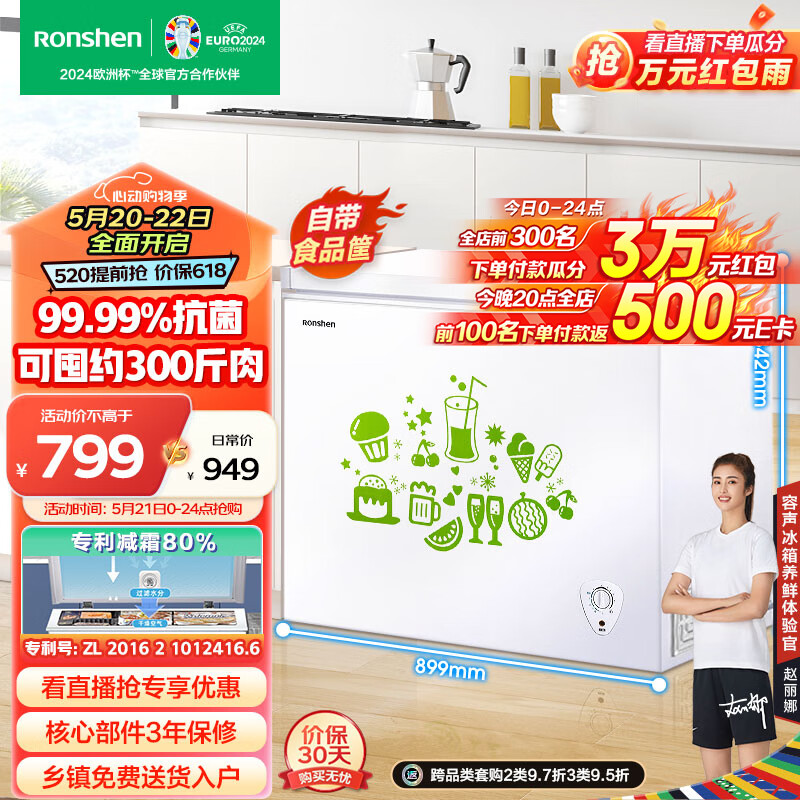 容声(Ronshen)205升减霜小型冰柜家用冷藏冷冻转换单温冷柜 一级能效家商两用卧式冰箱BD/BC-205MB以旧换新价格:799.00元!