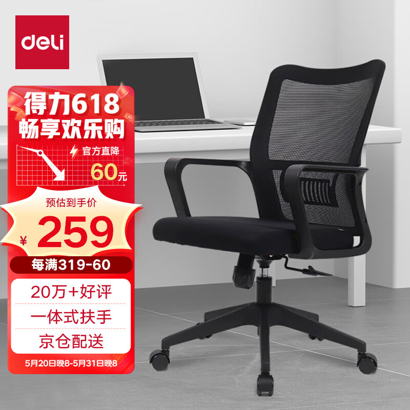 得力(deli)91103 简约时尚办公椅 人体工学电脑椅 居家书房座椅 经典黑价格:319.00元!