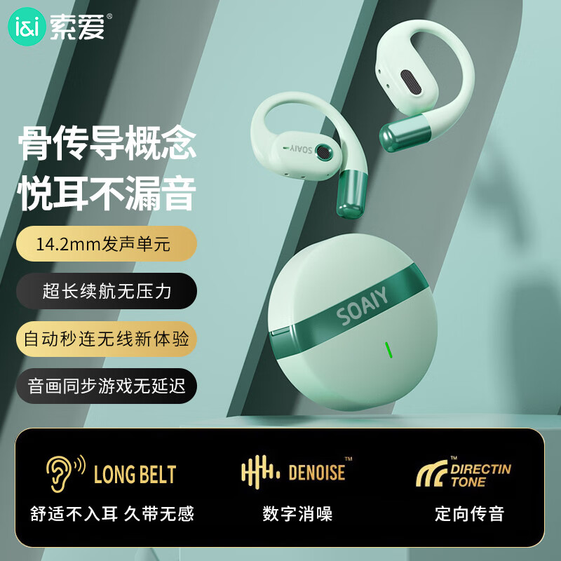 索爱(soaiy)GD28骨传导概念蓝牙耳机真无线开放不入耳耳夹式挂耳运动跑步骑行通话降噪适用苹果华为 蓝价格:199.00元!