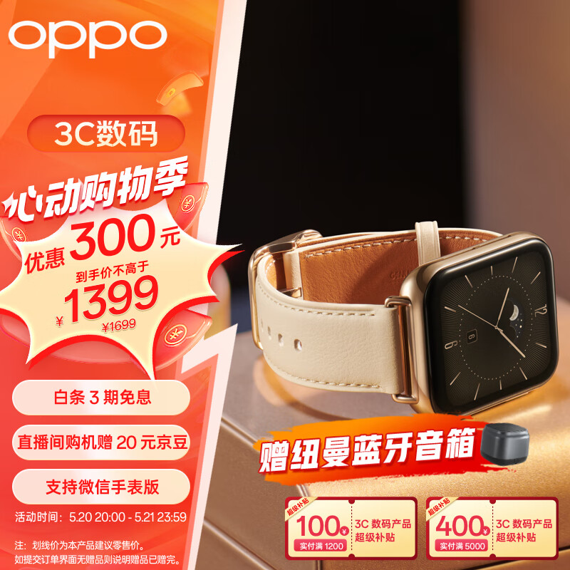 OPPO Watch 3 羽金 全智能手表 运动健康手表男女eSIM电话手表 血氧心率监测 适用iOS安卓鸿蒙手机价格:1399.00元!