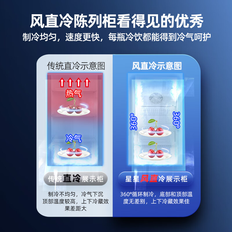 星星(XINGX) 316升 立式玻璃门展示柜冷柜 饮料陈列柜 商用冷藏冰箱(银灰色) LSC-316C价格:1349.00元!