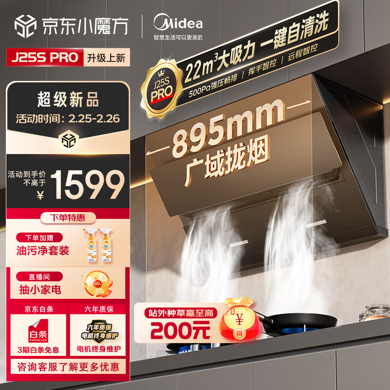 美的(Midea)抽油烟机 家用厨房22风量侧吸式吸烟机 脱排油烟机CXW-280-J25S PRO价格:1599.00元!