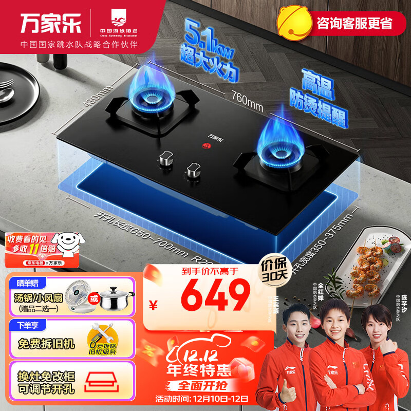 万家乐燃气灶5.1kw火力 家用嵌入式台式两用燃气灶 钢化玻璃面板 高温防烫提醒 全进风天然气灶JZT-TAC5价格:749.00元!