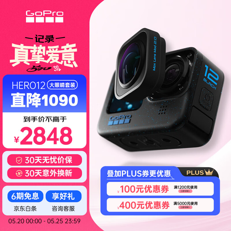GoPro HERO12运动相机 户外摩托骑行水下防水相机 潜水照相机 Vlog数码运动防抖摄像机 大眼睛套装价格:2848.00元!