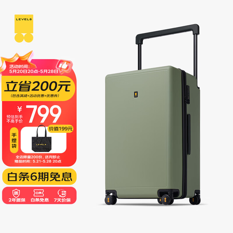 地平线8号(LEVEL8)行李箱 男女密码大容量万向轮26英寸宽拉杆大旅行家PC拉杆箱 绿色价格:999.00元!