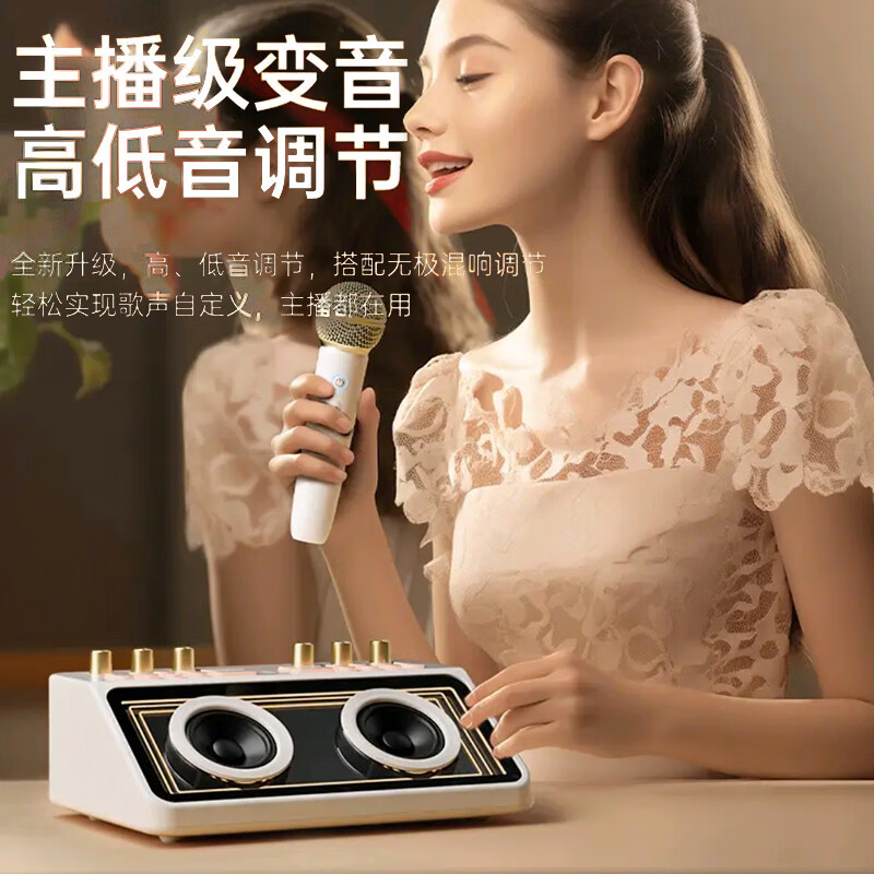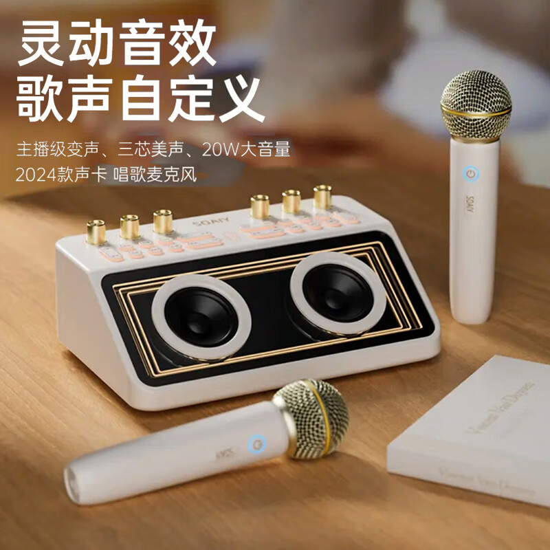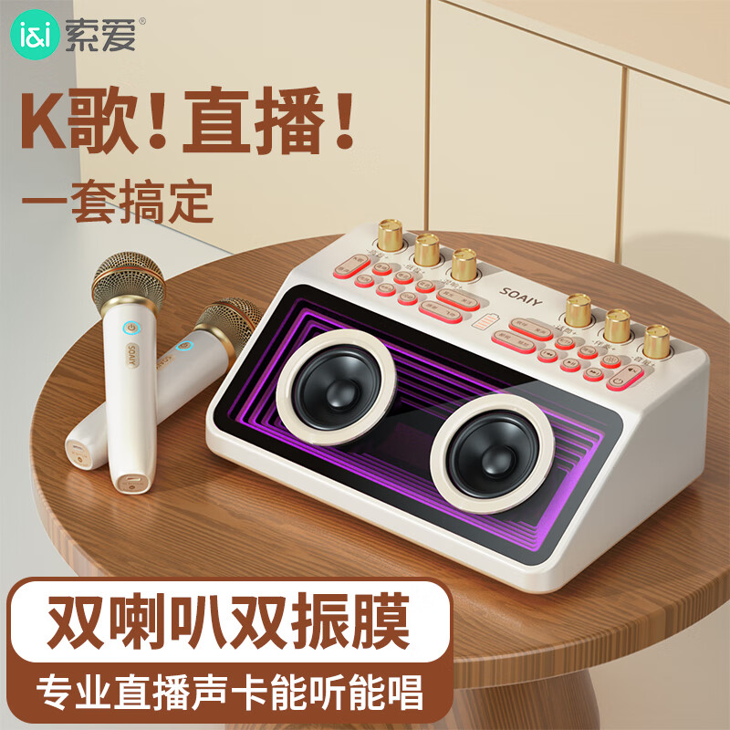 索爱(soaiy)K歌音响麦克风音箱家用儿童话筒k歌家庭ktv无线蓝牙唱歌 SG12 油彩白【双麦】礼物价格:399.00元!