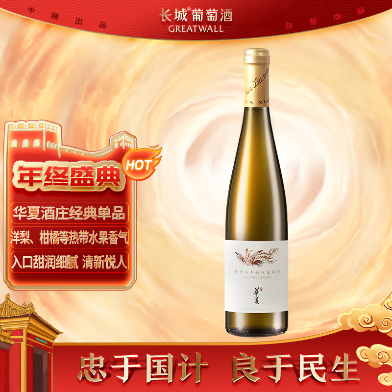 长城 华夏酒庄 霞多丽半甜白葡萄酒 750ml 单瓶装价格:88.00元!