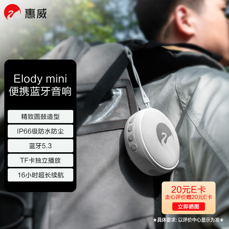 惠威(HiVi)Elody mini便携式音响 户外迷你音箱 长续航 防水防尘设计 晨曦白价格:299.00元!