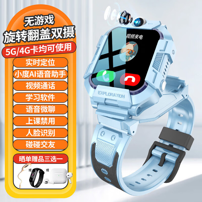 DQV天才儿童电话手表小学生无游戏精准定位可插5G卡4G通防摔防水男孩女孩智能拍照手表3-6-12岁 蓝色【旋转双摄+学习助手】价格:159.00元!