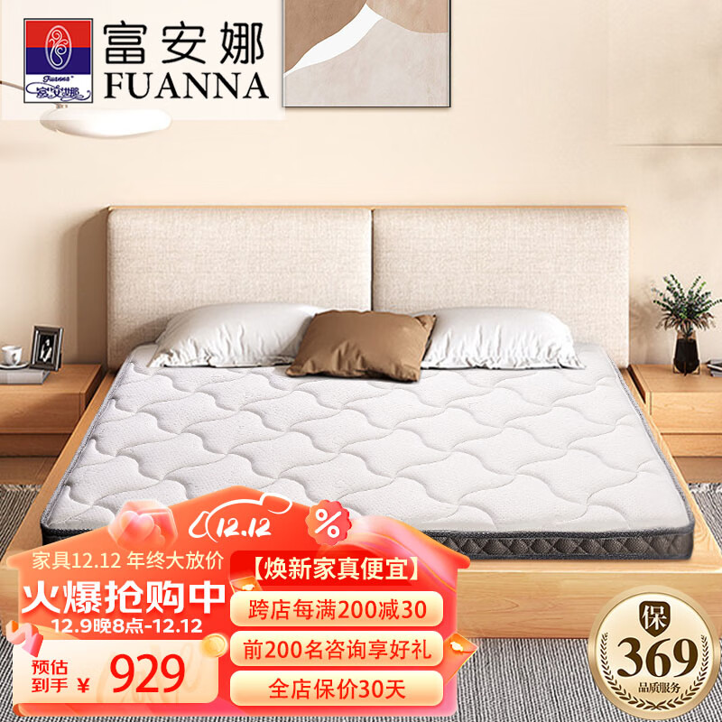富安娜床垫 偏硬护脊 天然乳胶床垫防螨抗菌3D黄麻榻榻米薄床垫 1.2*2米价格:1079.00元!