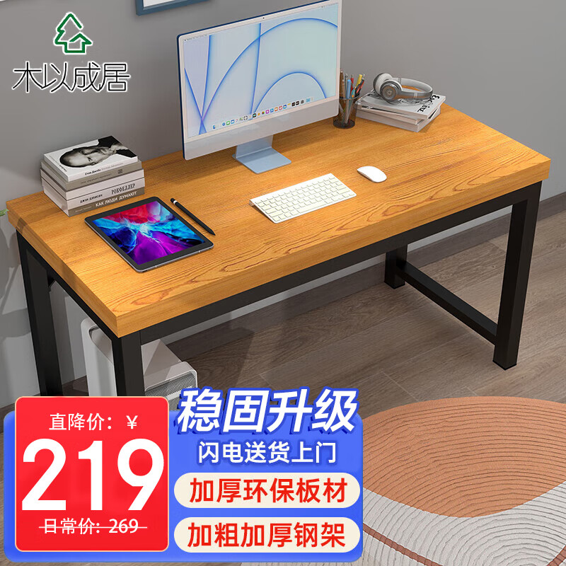 木以成居电脑桌台式加厚桌面家用书桌学习桌学生写字桌子黄檀木色100*60cm价格:269.00元!