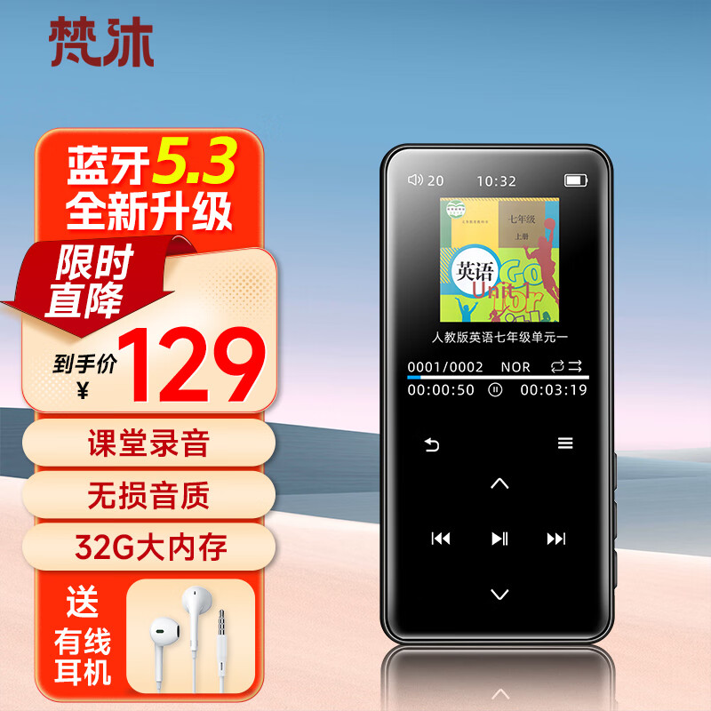 梵沐PA02 32G mp3无损音乐播放器 蓝牙 mp4学生专用随身听 便携式 外放 黑色价格:109.00元!