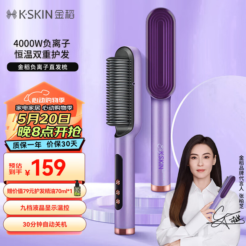 金稻直发梳负离子夹板卷发棒内扣直板夹造型梳子 4000万负离子护发30秒速热KD380K紫色 情人节礼物女价格:309.00元!