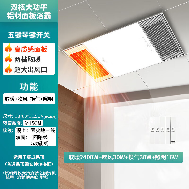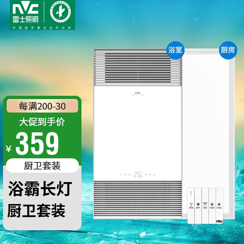 雷士(NVC)卫生间双电机暖风防锈防氧化型材面板卫生间集成吊顶浴霸套餐价格:449.00元!