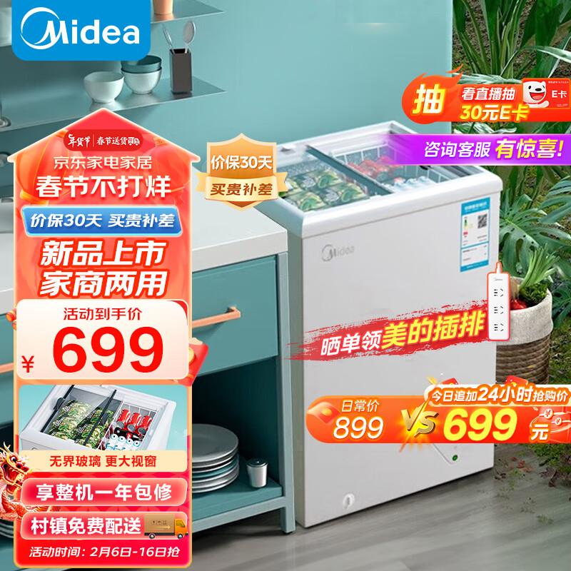 美的家用商用冰柜冷柜展示柜大容量小型冰箱冷冻柜摆摊雪糕陈列柜饮料水果冷藏保鲜柜MS-100LGE价格:749.00元!