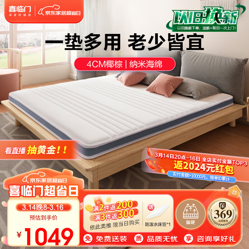 喜临门薄垫 4cm椰棕床垫 抑菌防螨青少年老人床垫 伊菲10 2S 1.2x1.9米价格:1049.00元!