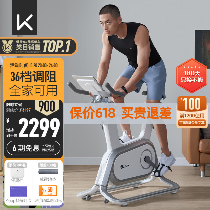 Keep 动感单车C1 家用健身车健身自行车健身器材专业版白色款K0101B价格:2399.00元!