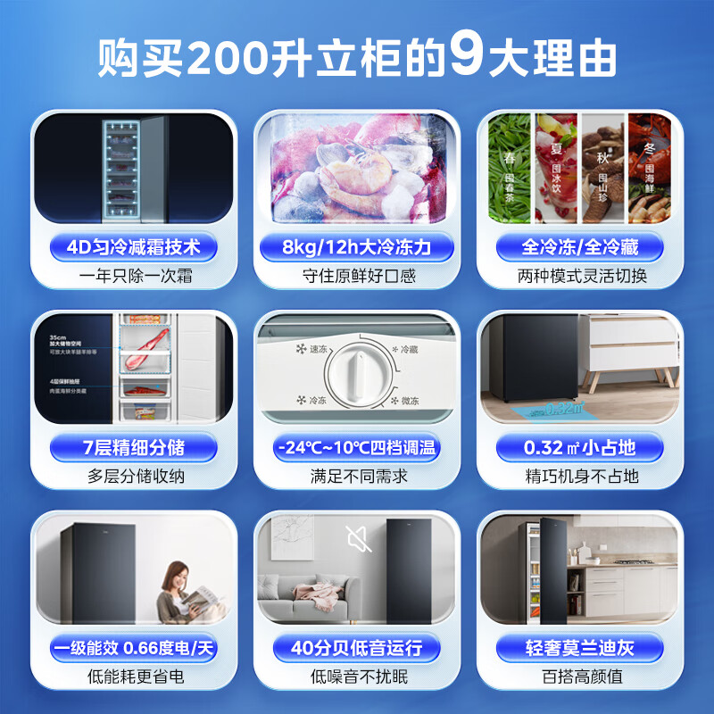 美的(Midea)200升 节能低霜家用囤货立式冰柜 冷藏冷冻转换抽屉式冰柜 小型全冷冻冰箱冷柜 BD/BC-200UM价格:1499.00元!