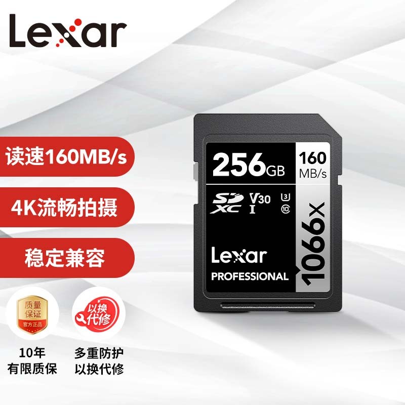雷克沙(Lexar)256GB SD存储卡 C10 U3 V30 读160MB/s 写120MB/s 快上加稳4K流畅拍(1066x)价格:439.00元!