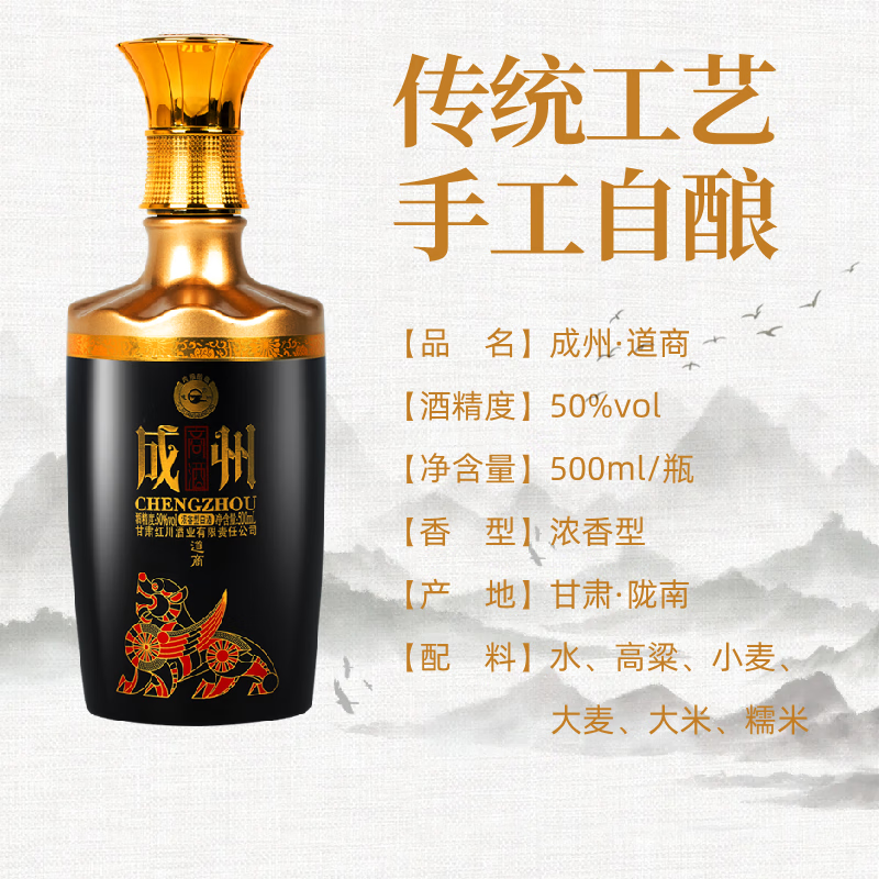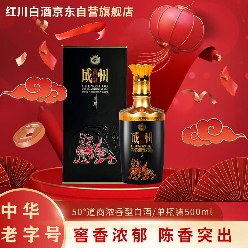 红川 2017年成州道商浓香型白酒50度高度白酒甘肃纯粮酒500ml单瓶装价格:369.00元!
