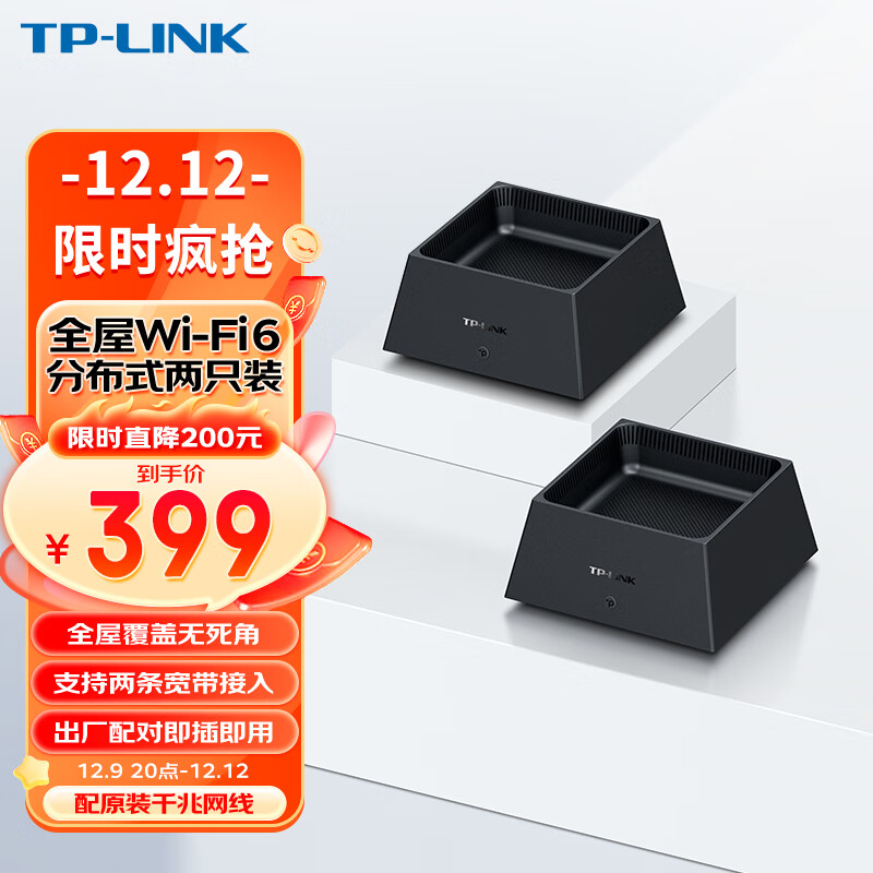 TP-link 全屋WiFi6 子母路由器 AX3000分布式两只装K20 千兆无线双频 别墅大户型易展Mesh 无缝漫游 即插即用价格:599.00元!