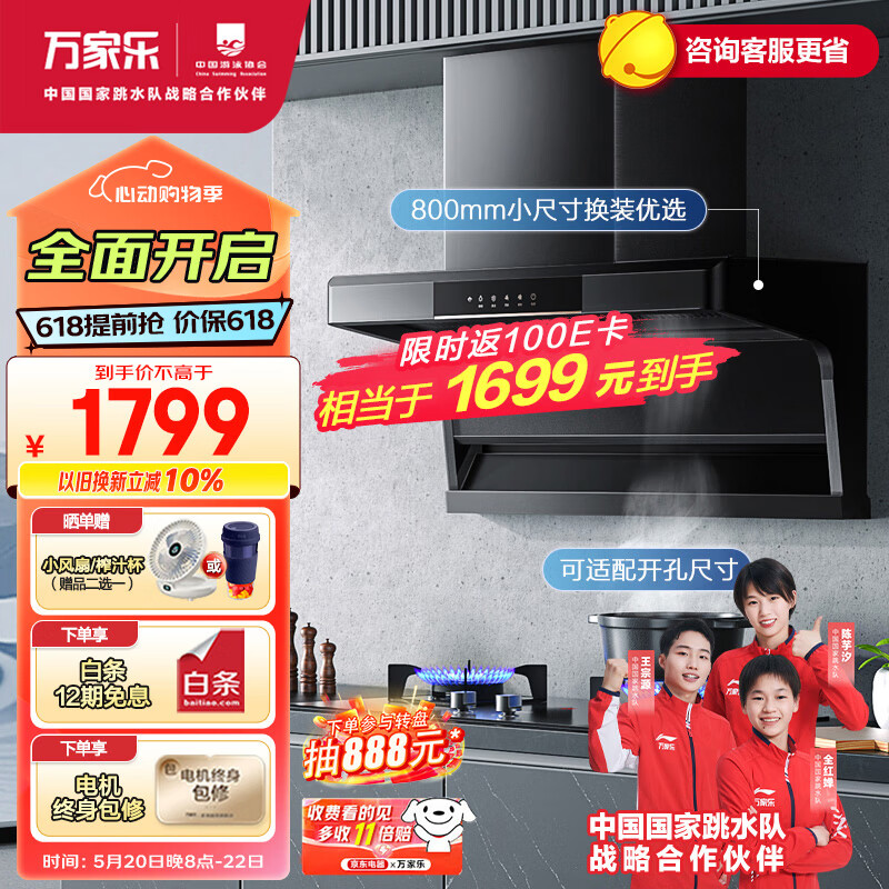 万家乐 抽油烟机 顶侧双吸油烟机7字型烟灶套装22m3/min大吸力自清洗挥手抽油烟机燃气灶具AK5+AY4液化气价格:1999.00元!