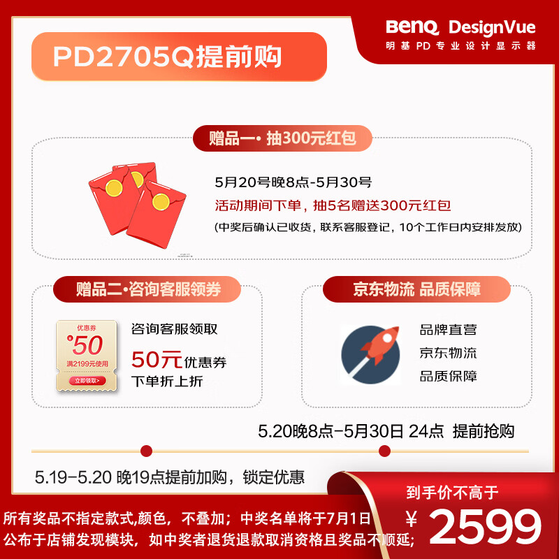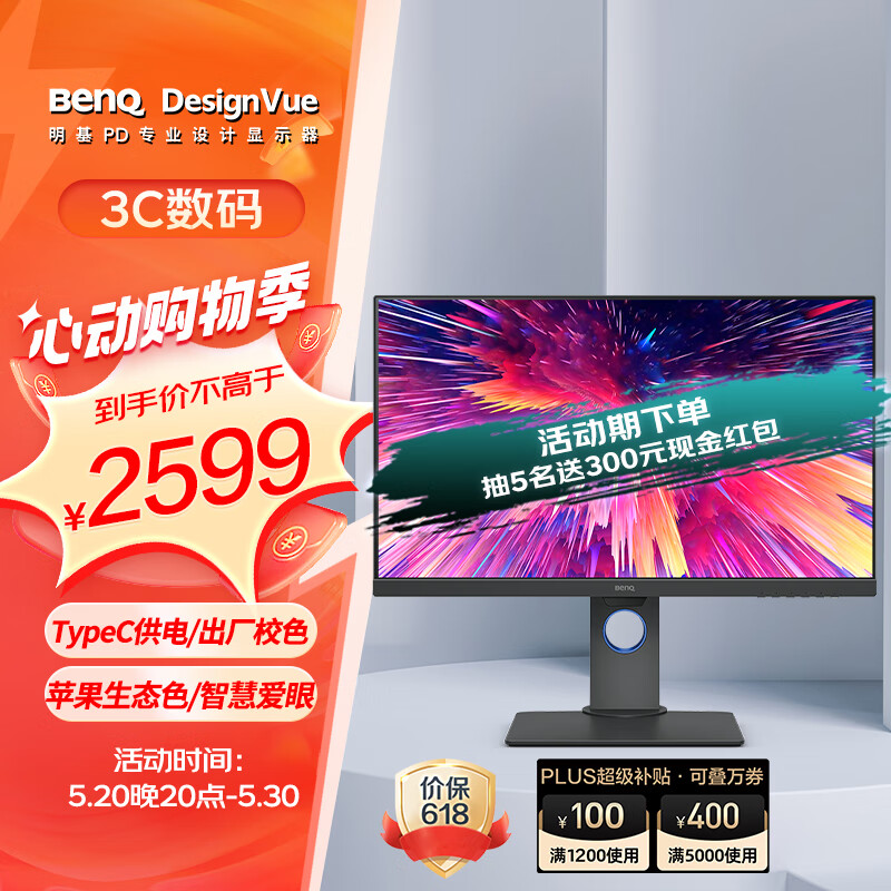 明基(BenQ)PD2705Q 27英寸2K HDR专业设计 Type-C65W反向充电 KVM高效分屏/100%sRGB色域电脑显示器价格:2899.00元!