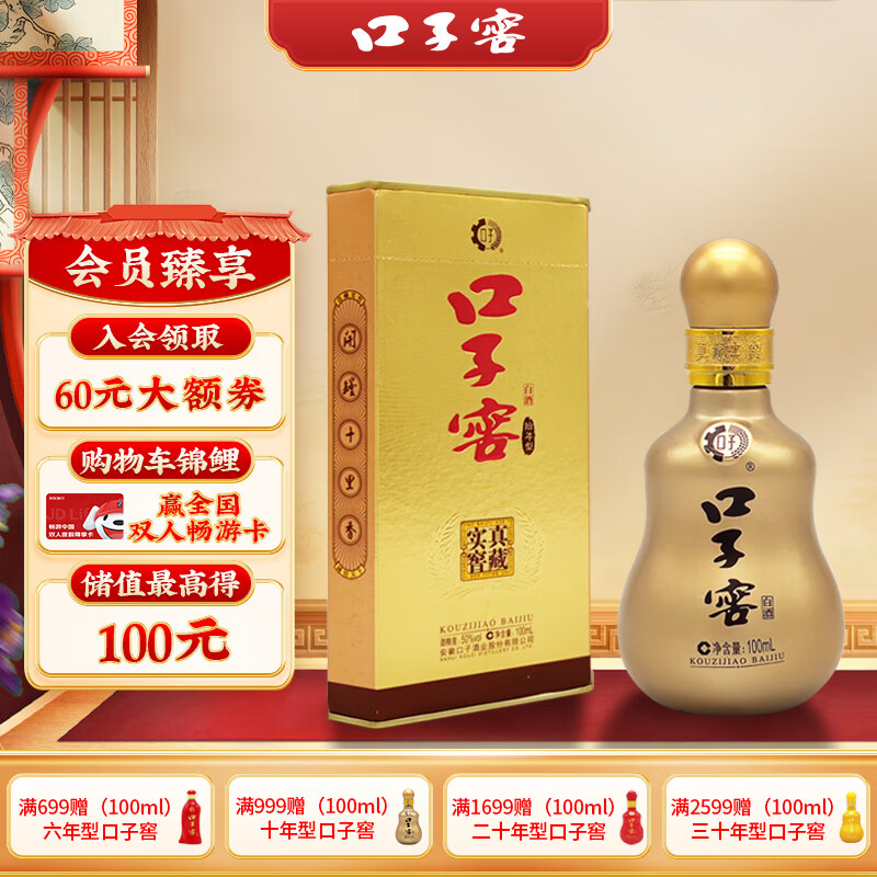 口子窖十年型兼香型白酒50度100ml*1瓶 小酒 纯粮口子酒 送礼宴请价格:78.00元!