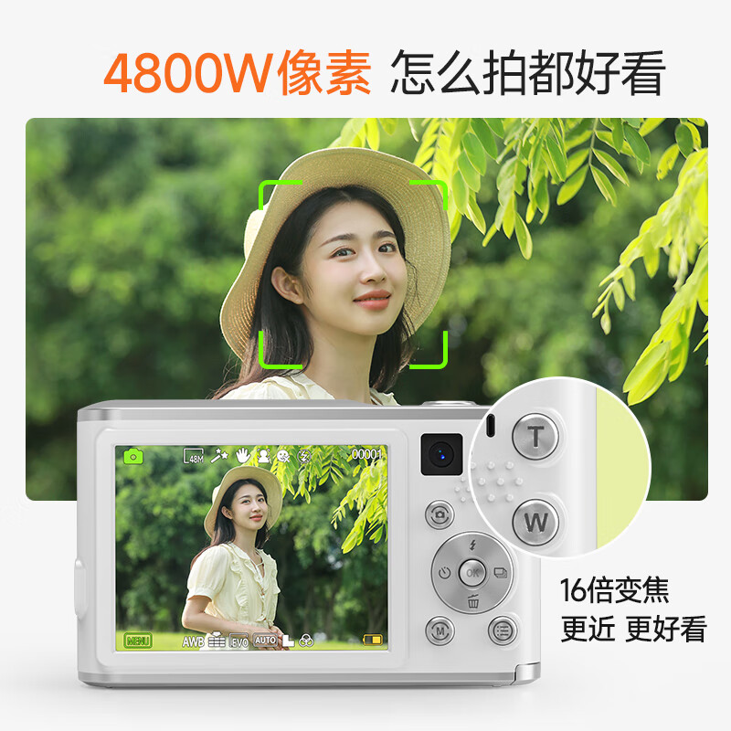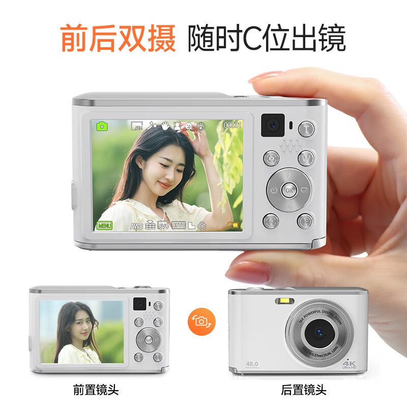 彩族 前后双摄9600W像素高清ccd学生数码相机 自拍vlog校园迷你便携随身带小卡片机可传手机照相机 64G价格:819.00元!