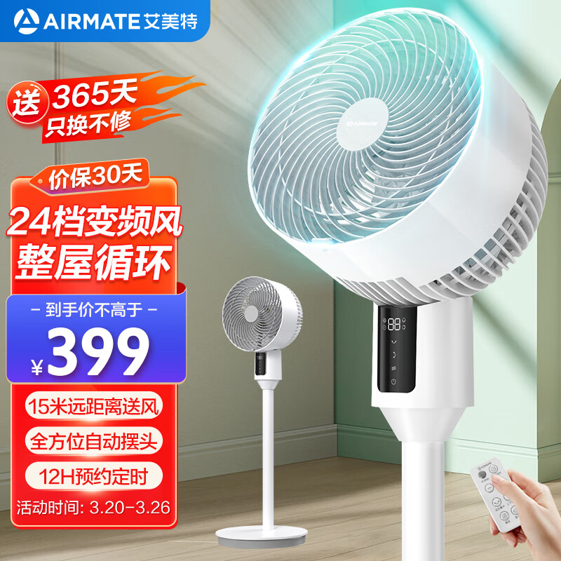 艾美特(AIRMATE)24档直流变频空气循环扇家用轻音节能换气电风扇3D自动摇头四季通用落地扇换气降浊风扇 FA18-RD48价格:489.00元!