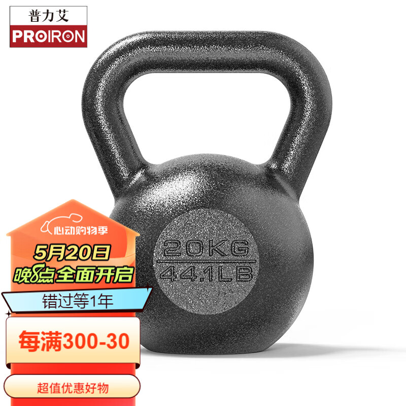 PROIRON普力艾 铸铁壶铃男士提壶哑铃壶健身壶铃深蹲练臀器械壶铃球 20KG价格:339.00元!