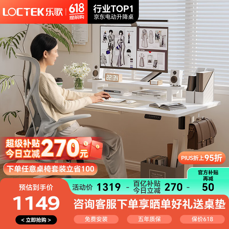 乐歌电动升降桌升降电脑桌电竞桌台式书桌学习桌子E2雅白色1.4m套装价格:1149.00元!