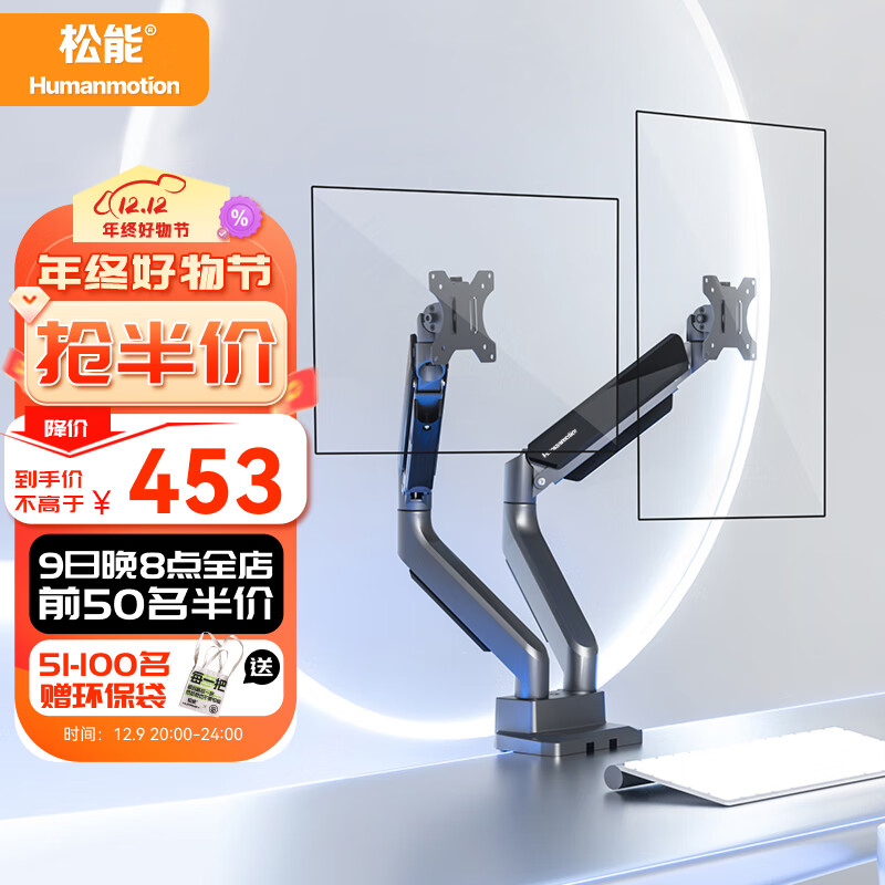 松能显示器支架双屏 电脑支架双屏 双屏显示器支架 显示器增高架 台式电脑支架 双屏支架大承重款15kg T9-2价格:559.00元!