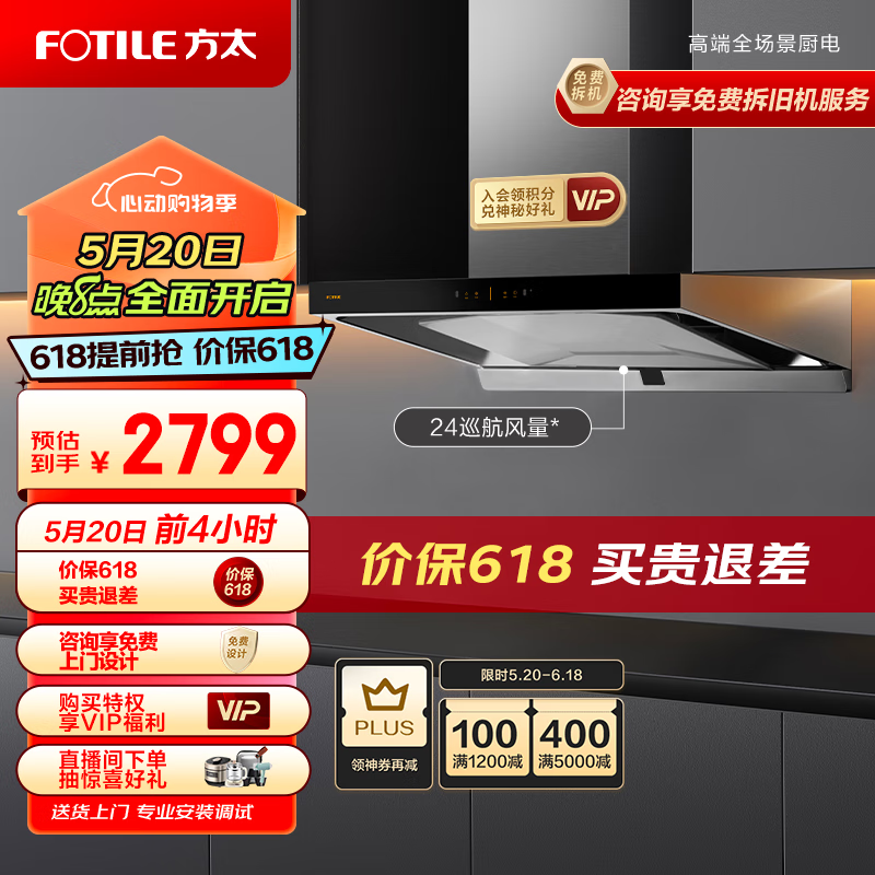 方太家用欧式顶吸抽油烟机 24巡航风量超大吸力 直流变频 挥手智控 智能巡航EMQ6T价格:3099.00元!