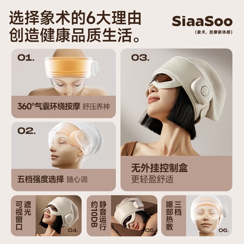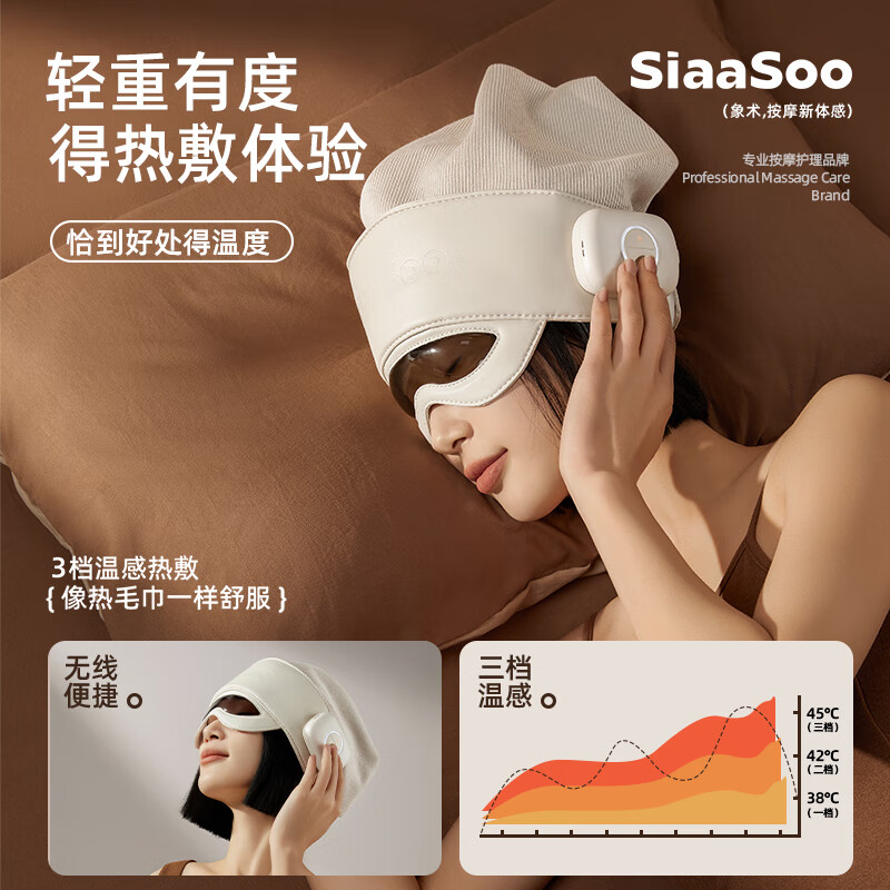 象术(SIAASOO)头部按摩器按摩仪头眼颈一体式睡眠仪睡眠神器热敷眼部眼罩送父母长辈男女朋友生日礼物情人节礼物 头部按摩仪H1【杏仁黄】价格:899.00元!