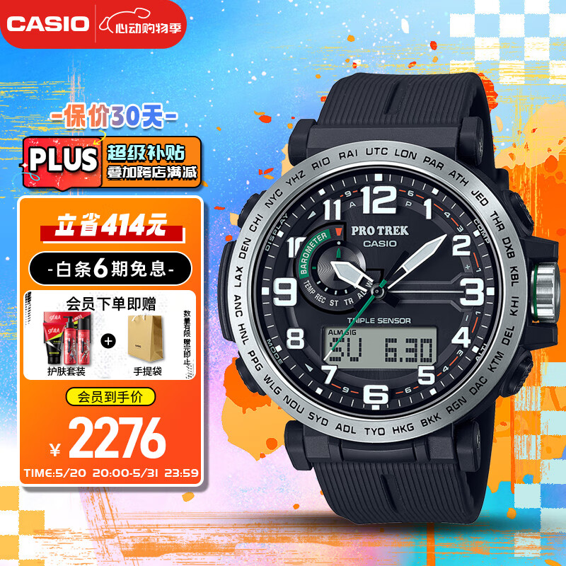 卡西欧(CASIO)手表男士PROTREK光动能运动电子日韩表520送男友礼物PRG-601-1价格:2690.00元!