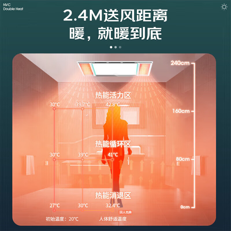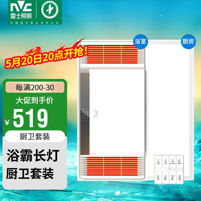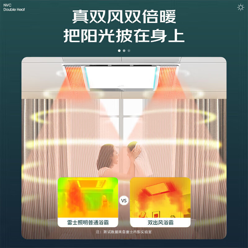 雷士(NVC)双风口取暖换气风暖浴霸排气扇照明一体暖风机取暖器+面板灯套餐A价格:659.00元!