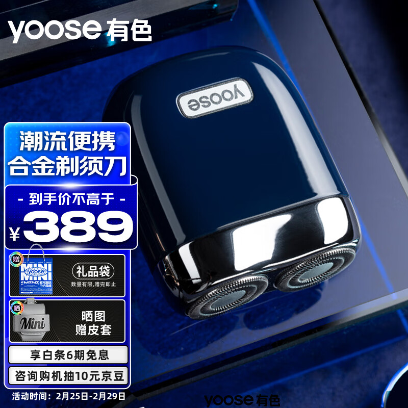 有色(yoose)男士电动剃须刀 迷你便携式刮胡刀 全身水洗 新年礼物送男友 剃须刀礼盒 MINI 龙胆蓝价格:419.00元!