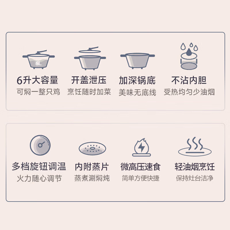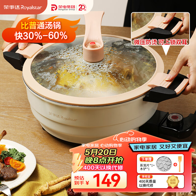 荣事达(Royalstar)电火锅6L微压火锅 电炒锅 不粘涂层家用电热锅 一体锅 多功能电子微压锅不粘煲汤锅ZG16B16 配蒸片价格:149.00元!