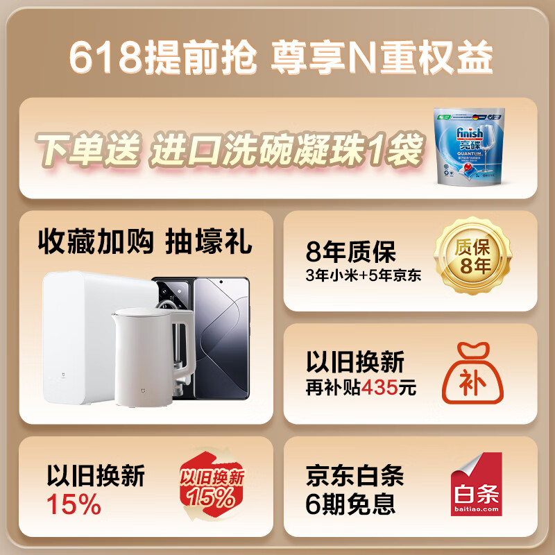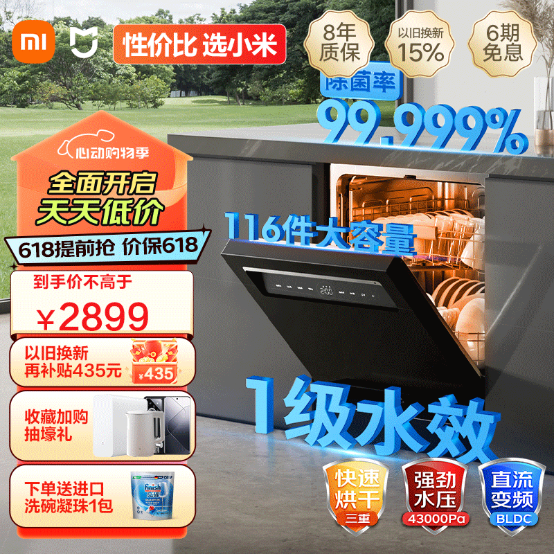 米家小米洗碗机N1 16套大容量嵌入式独立式独嵌两用智能开关门热风烘干168H长效存储价格:2899.00元!