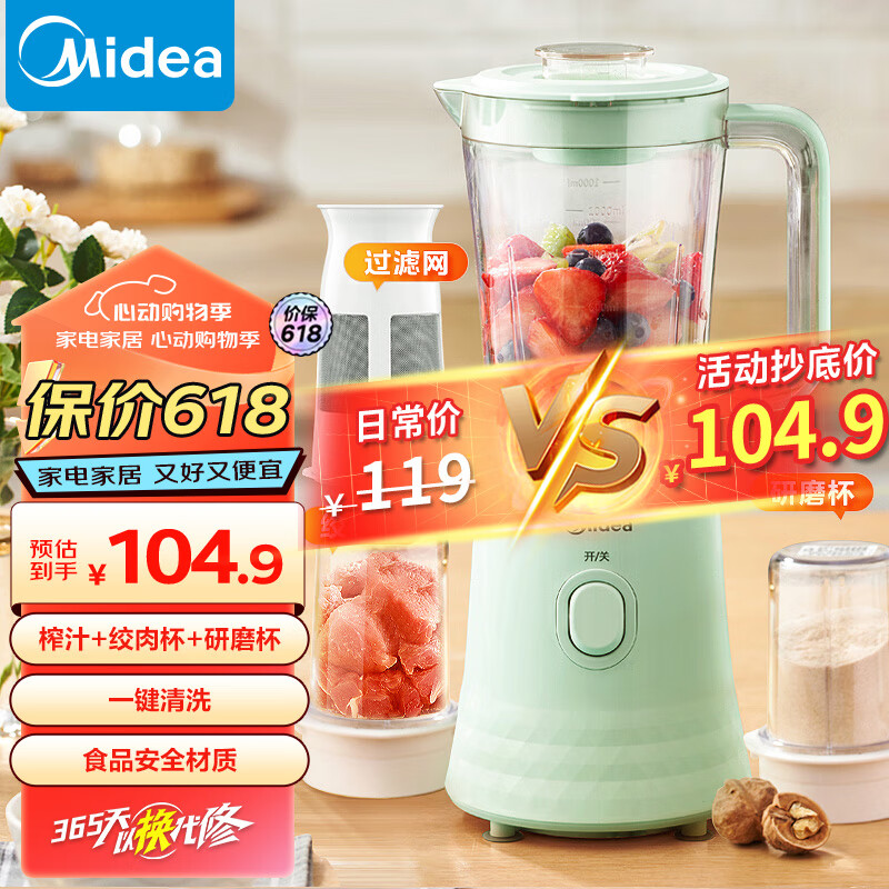 美的(Midea)榨汁料理机一机豪华三杯 家用研磨粉机智能婴儿辅食机多功能搅拌机可绞肉WBL2531H价格:104.90元!