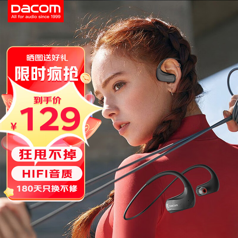 dacom Athlete运动蓝牙耳机跑步无线耳机 双耳音乐挂耳式骑行入耳头戴式适用于苹果华为小米安卓 黑色价格:149.00元!